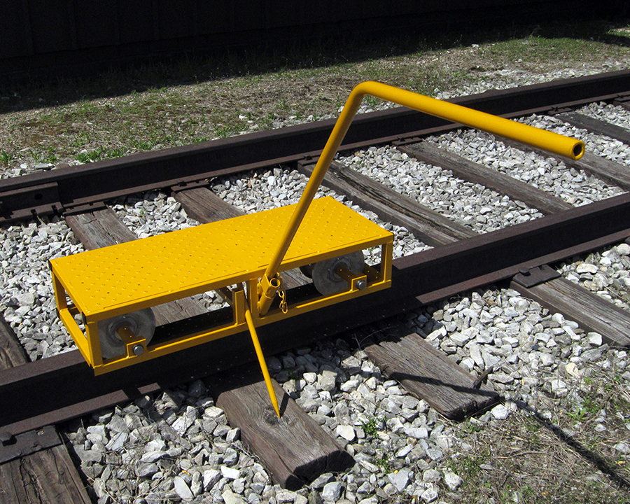 Track Dolly, Inspector 1500 lb Capacity For standard 56-1/2³ (1,435 mm) track gauge Fully-Welded All Steel Square-Tube Frame Perforated Steel Deck 1,500 lbs. (680 kg) Load Capacity Double Flanged Cast Aluminum Wheels Useful as a general maintenance carrier or inspectors dolly Manufactured with the same high quality metals as Nolans steel tool and supply carts Longer (than the TD-5) and slightly wider to more efficiently handle maintenance tools and materials Kickstand-type spike adds stability during loading and unloading Cast aluminum wheels are double-flanged with pre-greased, sealed ball type bearings
