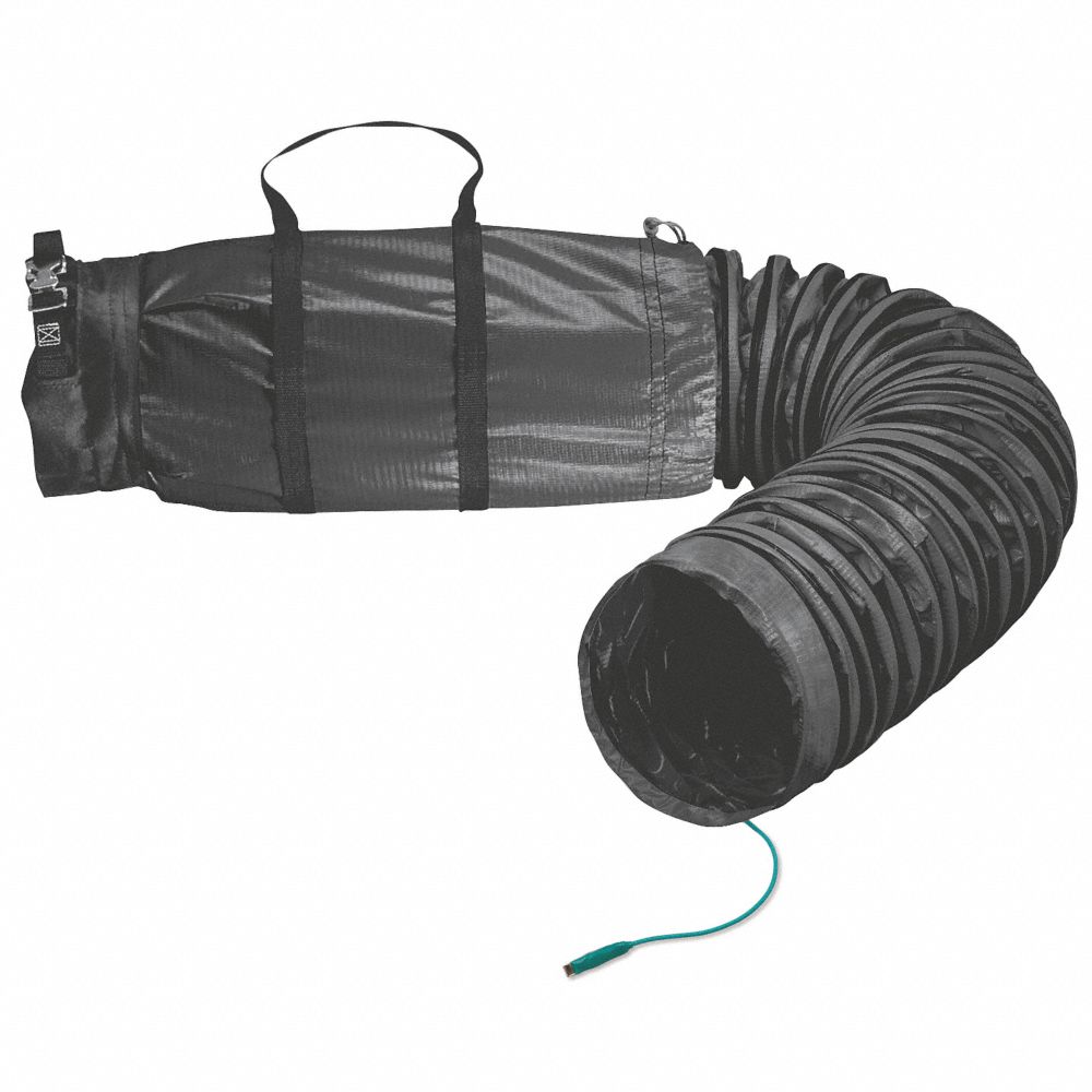 This lightweight self-storage bag with attached statically conductive (EX) ducting is designed for convenient storage and easy transport of explosion-proof ducting. Designed to be ideal for moving large volumes of air, smoke or fumes using portable and temporary ventilation blowers under positive pressure.