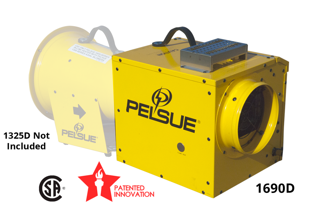 Model 1690D, when coupled with the 1325D Axial Ventilator, provides fresh, warm air for all your confined space needs. This unit is propane fired and electrically powered. This requires the model 1325D Ventilator to operate. A Remote Thermostat Control (Model 1625) is also available. This model is available in both North American and European voltages.