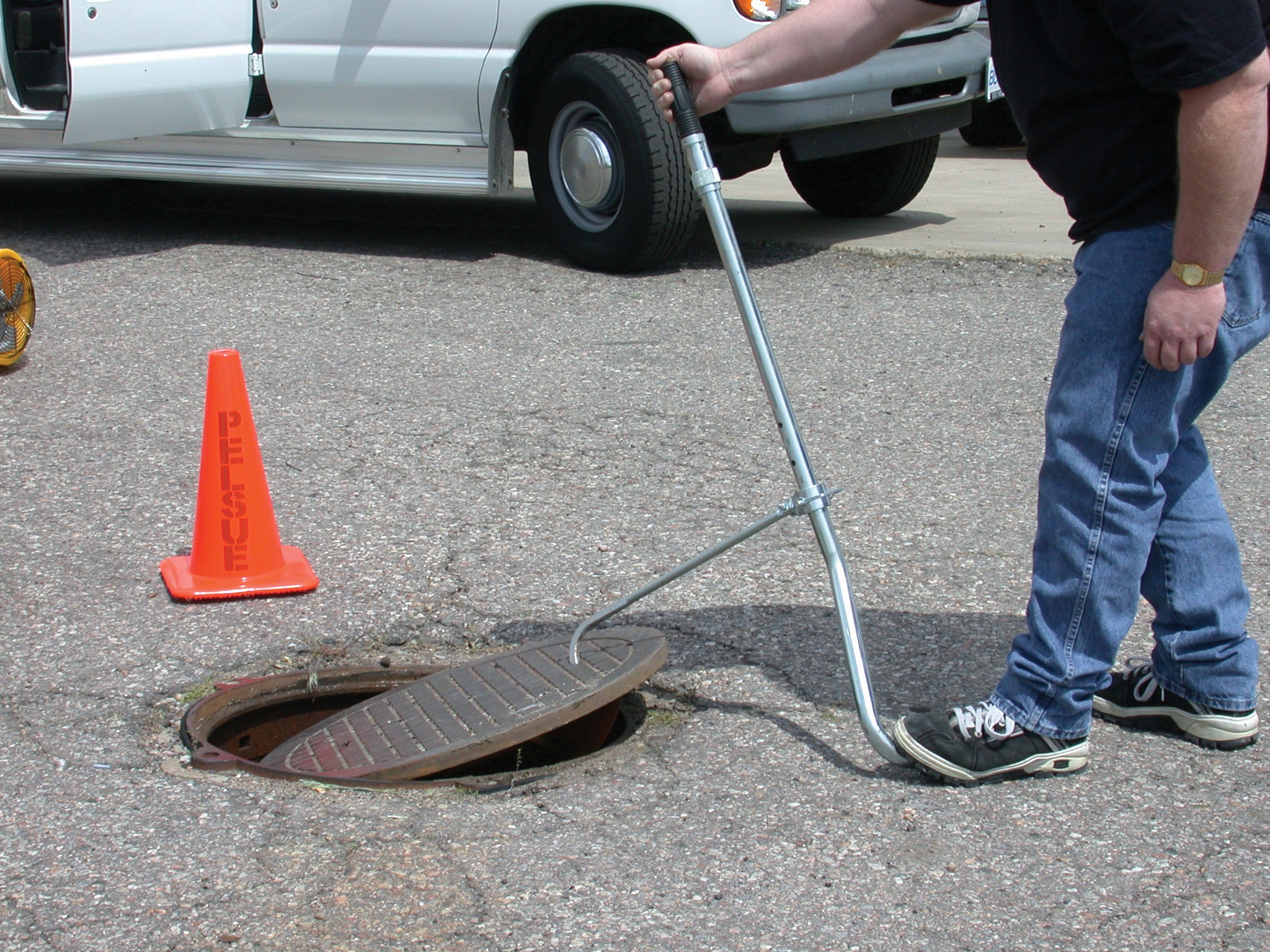Weighs only 12.5 lb (5.6 kg) and has a special handle to allow for a better grip. It is also designed to remove ice or dirt by using the built-in scraper. This model features a heat-treated hook that can lift manhole covers which are equipped with a hole. The hook locks in the handle when not in use.