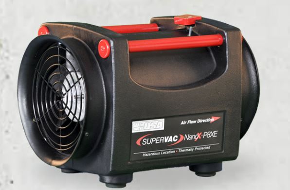 Meet the market's smallest, most powerful confined space fan, designed for confined space ventilation challenges with unknown gases and potentially dangerous environments! This 8 in fan delivers the highest airflow in its class and can be used to supply clean air to a space or can be use to exhaust fumes from an area. The P8XE is powered by a motor rated for Class 1 Group D environments.