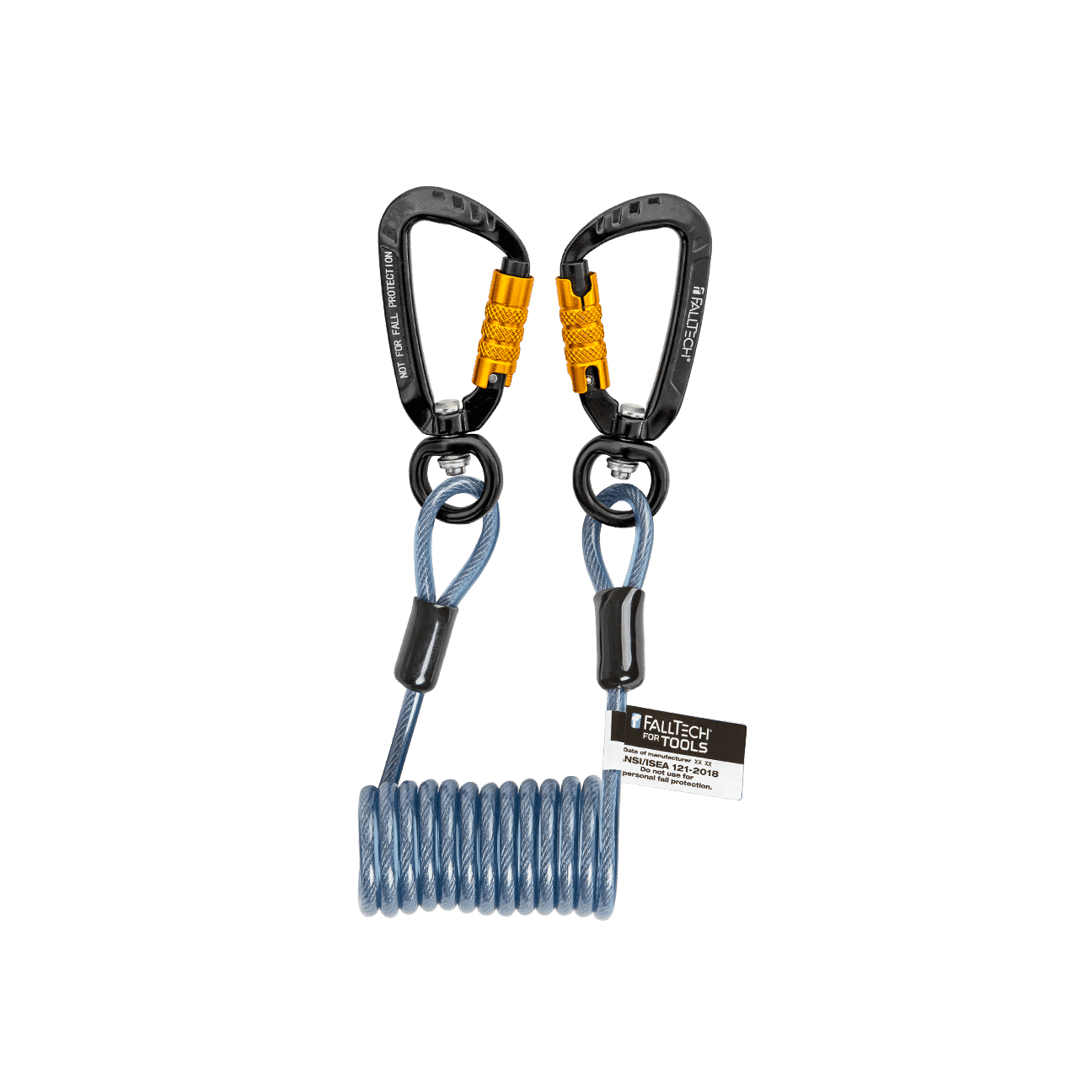 5 lb Premium Tool Tether with Stretch Coil Coated Wire and Dual Swivel Aluminum Carabiners