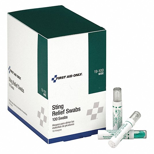 Medicated sting relief "swab" style packaging offers exceptional shelf life and won't tend to dry out in adverse storage conditions. Relief from the pain and discomfort associated with bug bites and stings. Perfect for standalone first aid or as a refill for a kit.