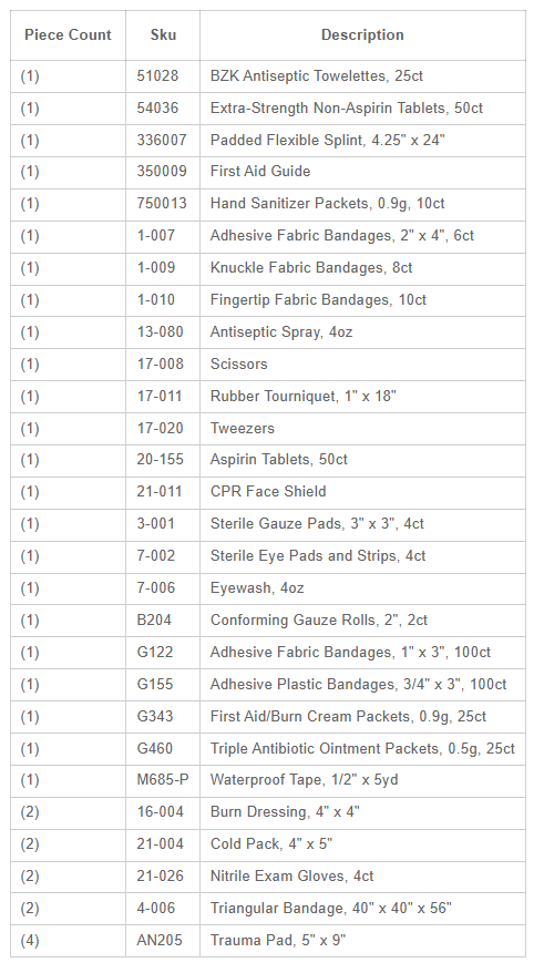 ANSI 2 B+ Shelf First Aid Station with medications. This solid steel case comes with a carrying handle and is wall mountable. Contents exceed the 2015 ANSI Class B requirements and are sufficient to treat 75 to 100 people.