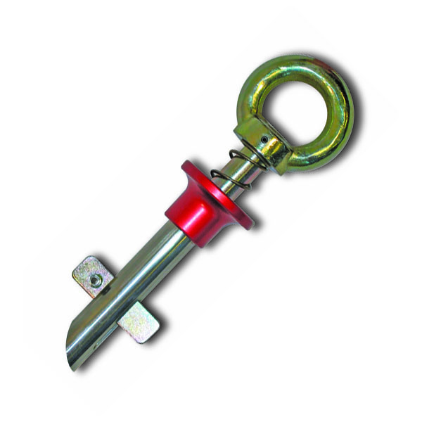 The Guardian Fall Protection Bolt Hole Anchor is a reusable 5,000 pound certified anchorage connector that can be used in either horizontal or vertical applications. Incredibly easy to install, the Bolt Hole Anchor simply needs to be squeezed to release its locking mechanism, inserted into a compatible hole ranging from 3/4 to 11/4 in in width, and then released to reengage the locking mechanism.