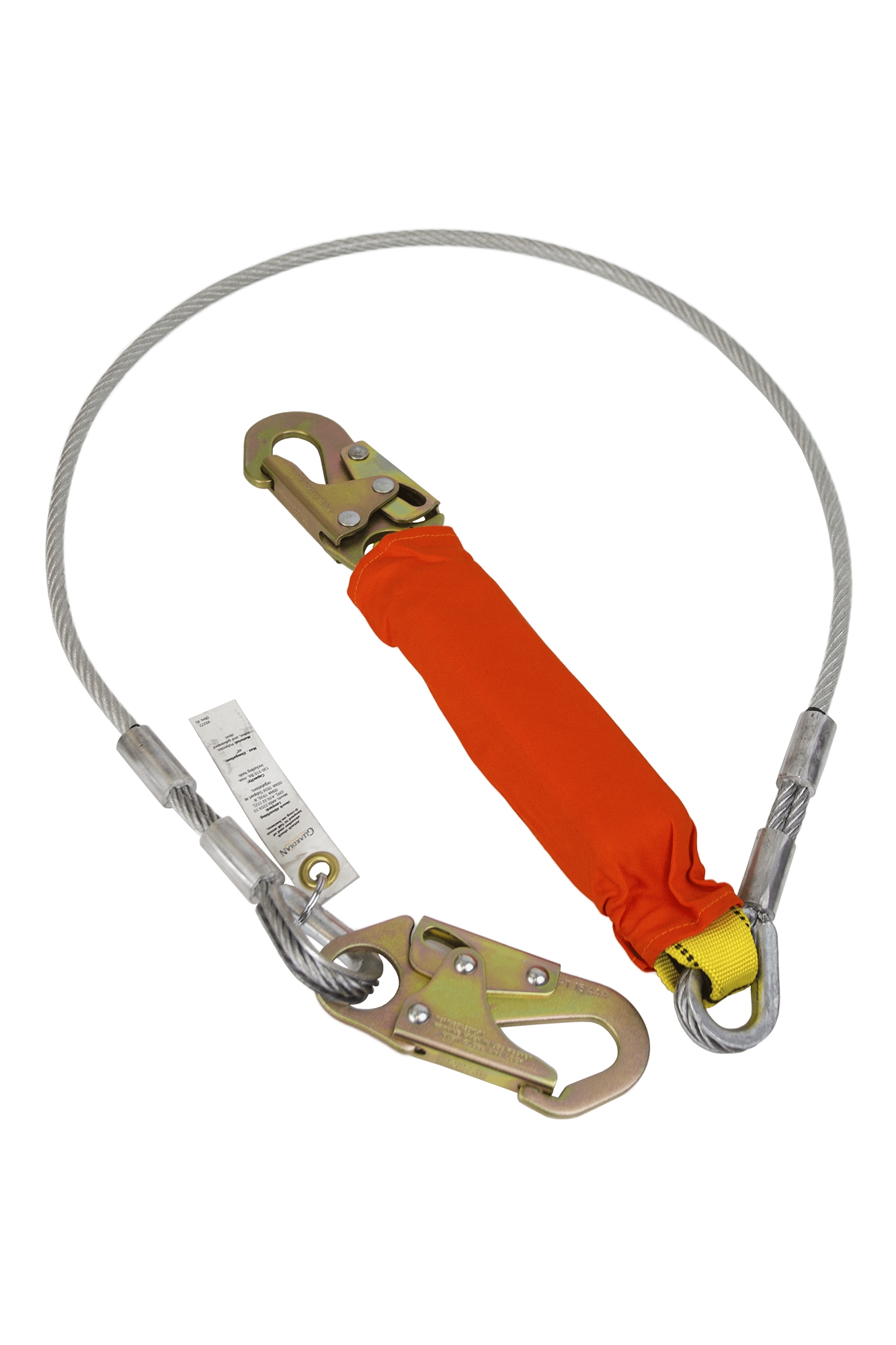 Comprised of an ultra-durable, vinyl coated cable, the Guardian Fall Protection Cable Lanyard is perfect for use in welding applications and other harsh environments. It can be used over sharp or abrasive edges and surfaces, is available in both single and double leg models, and comes with an integrated shock absorbing component. It also offers the added feature of a removable, flame resistant cover over the shock absorber for additional protection against sparks and heat