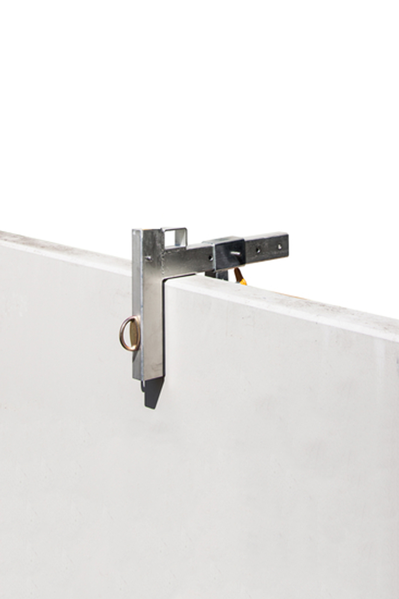The parapet anchor system can be used for the placement of guardrail uprights, single point tie-off, or in conjunction with a horizontal rope lifeline. This product meets osha standards for guardrail and anchor point purposes. This anchor system acts as a single point tie-off and also integrates a safety pin for secure set up and adjustment so that the parapet anchor can fit a wall from four inches (4") to twenty inches (20") in width. The product is reinforced for long life, rated for 5,000 pounds, and can be used with shock absorbing lanyards and retractables. The parapet anchor system has large easy-to-grip adjustment handles for quick set-up and proper securement. However, only one option may be performed at a given time (e.G., you cannot use the guardrail system while using the single point tie-off)
