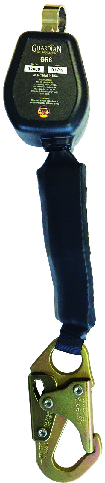 The Guardian GR6 is so lightweight, you'll almost forget you are wearing it. At a mere 1.7 lbs. and 3.3 X 2.5 X 2.5 in, the GR6 is the smallest and lightest SRL in its class - but weight is the only thing it gives up. The GR6's housing is constructed from UV-stabilized, high-strength polycarbonate/ABS and surrounds an incredibly strong steel load-bearing chassis. The sealed housing helps keep out dirt and other contaminants, providing extra protection for the internal components. Its HMPE webbing is ultra-lightweight and abrasion-resistant for a long life and is perfect for applications like solar that benefit from a more supple lifeline. Available with steel or aluminum snap or rebar hooks, the GR6 is a perfect fit in general industry, maintenance, and rebar applications.