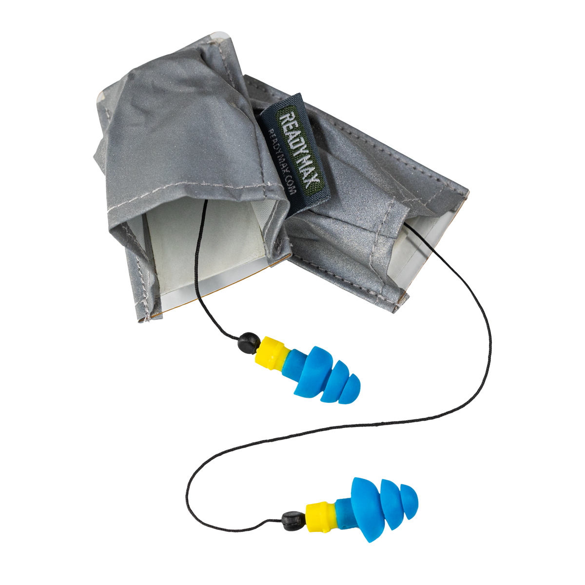 ReadyMax PlugsPockets Retractors with NRR27, SNR34 PermaPlug Earplugs (pair inside velcro pocket)