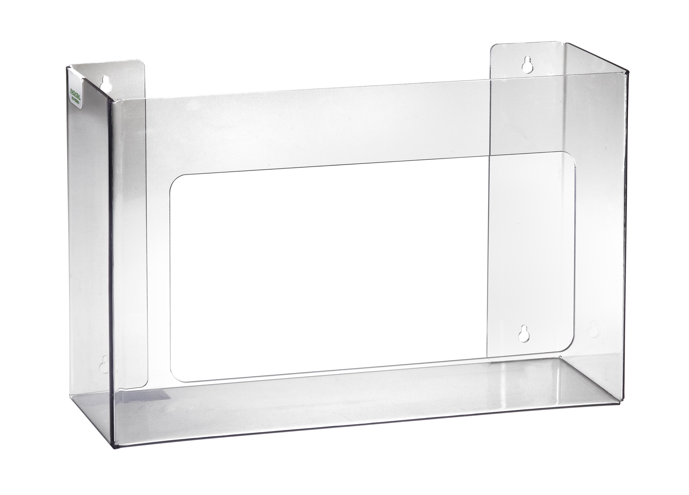 Extra deep dispenser holds 300 & 250 count or 11 & 8 mil. Disposable glove boxes. For all glove boxes up to 5.25 In thick. Mount Horizontally or Vertically. Clear PETG Recycled Plastic.(To include wall anchors and screws). Table or wall mount for easy access, 10.25 In H x 16 In W x 5.5 In D