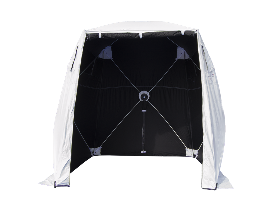 The SolarShade series tents are specially designed with a solar blocking material throughout the interior. The material helps blocks solar gain as well as unwanted light. This allows the tent to be deployed in hot weather environments, where the tent acts like a shade tree.