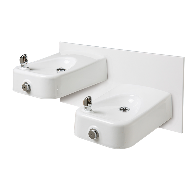 The Haws 1501 barrier-free Hi-Lo drinking fountain uses a patented stainless steel, push-button activated, valve assembly allowing for front access stream adjustment as well as cartridge and strainer access. This wall mounted fountain offers the 'only' all stainless-steel valve body that is machined out of solid bar stock, is fully serviceable through the front of the push-button assembly offering access to the water control cartridge and integral water supply strainer and has front access to the water stream height adjustment for easy maintenance without having to remove the valve. Equipped with vandal resistant components, this fountain is not easily disrupted, quickly discouraging vandals.