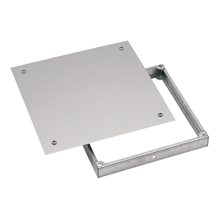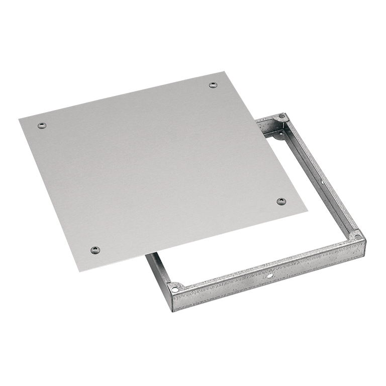 Model 6603 is a 9" x 9" (22.9 x 22.9 cm) access panel designed to facilitate maintenance by allowing easier access to plumbing behind the wall. It is made of stainless steel with a satin finish and includes frame and screws.