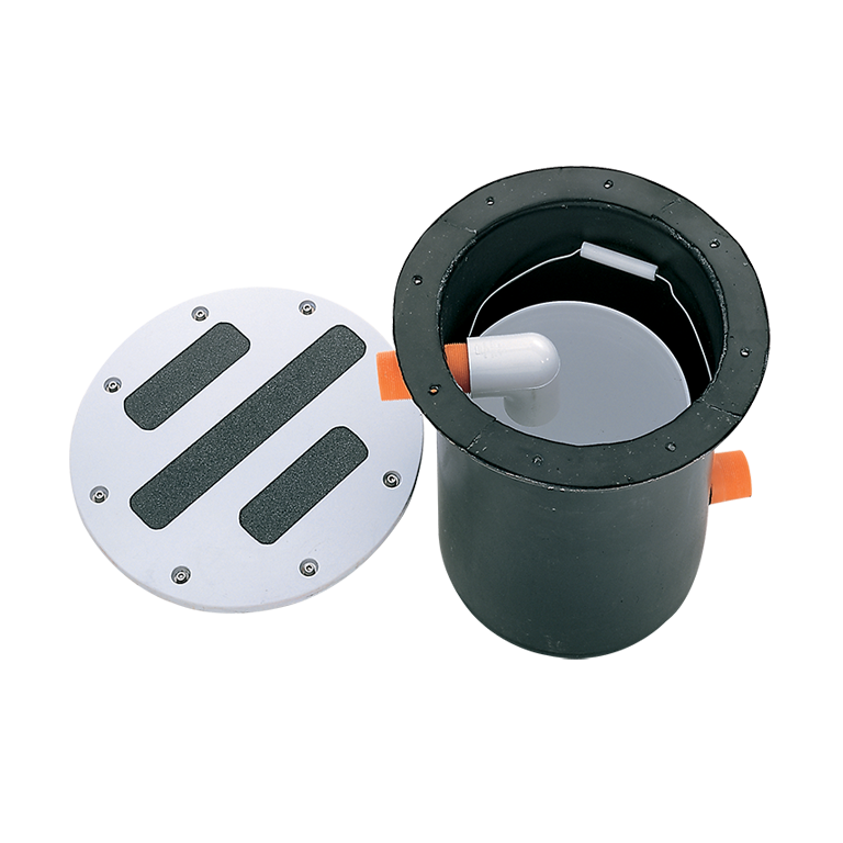 Model 6611 in ground sand trap, is designed to help prevent blockage of waste lines in pedestal drinking fountains. Installed adjacent to the fountain it collects sand and debris that can clog the drain line. Removable lid allows for easy maintenance. Body and fittings are of hi-density black polyethylene. Cover is white polypropylene with eight vandal-resistant stainless steel screws, cadmium plated steel anchoring nuts, rubber gasket and three anti-skid strips. Plastic collector bucket. Cover is intended for foot traffic only. Key is furnished for vandal-resistant screws.