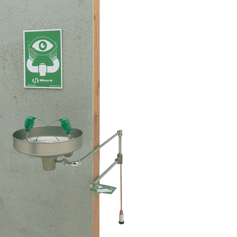 Haws emergency eyewash systems, like the freeze protected 7433FP, use anti-surge soft-flo heads that activate with the push of a stainless steel flag. Heads come equipped with pop-off dust covers, so when debris is present, the irrigation process stays protected. Space efficient design and integral wall bracket allow the 7433FP to be mounted in a number of easily accessible locations.