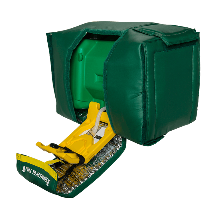 The newly retooled Haws 7501T compact portable tempered eyewash ideal for remote locations. The 9 gal (34 L), gravity-fed, eyewash uses a heated, insulated blanket to provide ANSI compliant tempered potable water in operating temperatures between -20 deg F (-30 deg C) and 100 deg F (38 deg C) for locations without access to a continuous potable water source. 120VAC 60HZ 1.38A electrical requirement with supplied 8 ft power cord. This unit is a cost-effective solution ideal for locations without access to potable water, including temporary decontamination sites, temporary treatment facilities and short-term job sites.