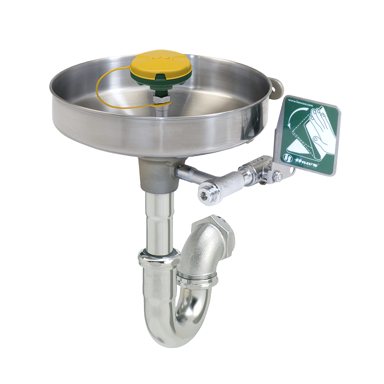 Model 7360BT-7460BT wall mounted eye and face wash features the medically acclaimed AXION MSR eye/face wash head assembly (patent pending). This revolutionary inverted flow design is the only product on the market that provides a medically superior response consistent with all EMT, emergency room and doctors' office protocols by sweeping contaminants away from the vulnerable nasal cavity. Traditional eyewashes irrigate from the outside edge of the eye back toward the nose, where contaminants can then be flushed into the nasal cavity through the lacrimal punctum, nature's ocular cavity drain.
