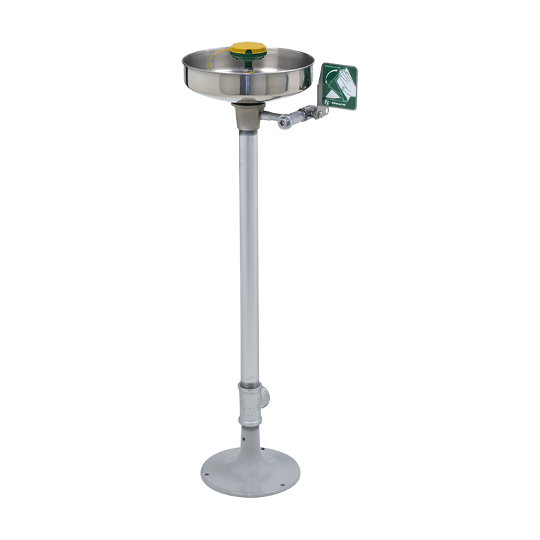 Model 7361-7461 pedestal mounted eye and face wash features the medically acclaimed AXION MSR eye/face wash head assembly (patent pending). This revolutionary inverted flow design is the only product on the market that provides a medically superior response consistent with all EMT, emergency room and doctors' office protocols by sweeping contaminants away from the vulnerable nasal cavity. Traditional eyewashes irrigate from the outside edge of the eye back toward the nose, where contaminants can then be flushed into the nasal cavity through the lacrimal punctum, nature's ocular cavity drain.
