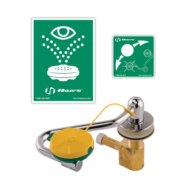 The Haws 7611 swing-away eye/face wash features the medically acclaimed AXION MSR eye/face wash head assembly (patent pending). This revolutionary inverted flow design is the only product on the market that provides a medically superior response consistent with all EMT, emergency room and doctors' office protocols by sweeping contaminants away from the vulnerable nasal cavity. Traditional eyewashes irrigate from the outside edge of the eye back toward the nose, where contaminants can then be flushed into the nasal cavity through the lacrimal punctum, nature's ocular cavity drain.