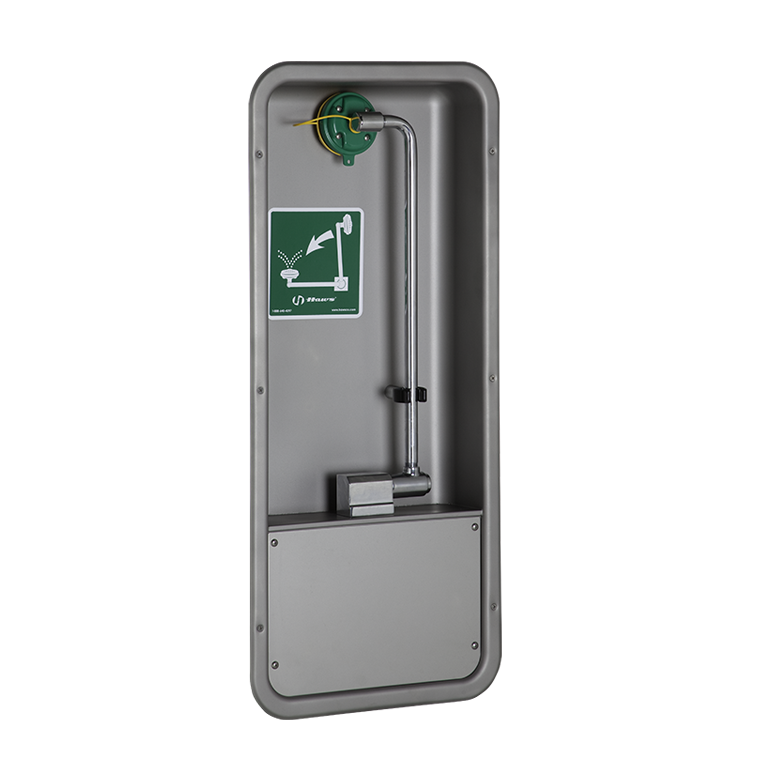 Model 7655WCC barrier-free eye/face wash features the medically acclaimed AXION MSR eye/face wash head assembly (patent pending). The revolutionary inverted flow design is the only product on the market that provides a medically superior response consistent with all EMT, emergency room and doctors' office protocols by sweeping contaminants away from the vulnerable nasal cavity. Traditional eyewashes irrigate from the outside edge of the eye back toward the nose, where contaminants can then be flushed into the nasal cavity through the lacrimal punctum, nature's ocular cavity drain.