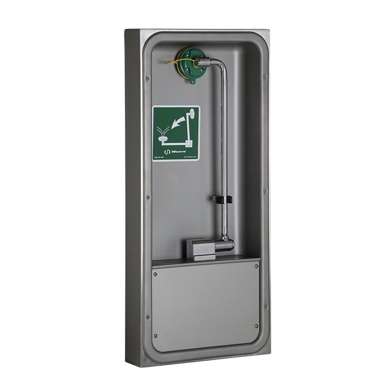 Model 7655WCSM wheelchair accessible surface mounted eye/face wash features the medically acclaimed AXION MSR eye/face wash head assembly (patent pending). The revolutionary inverted flow design is the only product on the market that provides a medically superior response consistent with all EMT, emergency room and doctors' office protocols by sweeping contaminants away from the vulnerable nasal cavity. Traditional eyewashes irrigate from the outside edge of the eye back toward the nose, where contaminants can then be flushed into the nasal cavity through the lacrimal punctum, nature's ocular cavity drain.