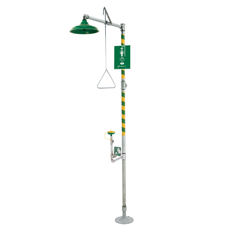 • A great addition to unsafe environments where the eyes, face and body may be exposed to corrosive materials