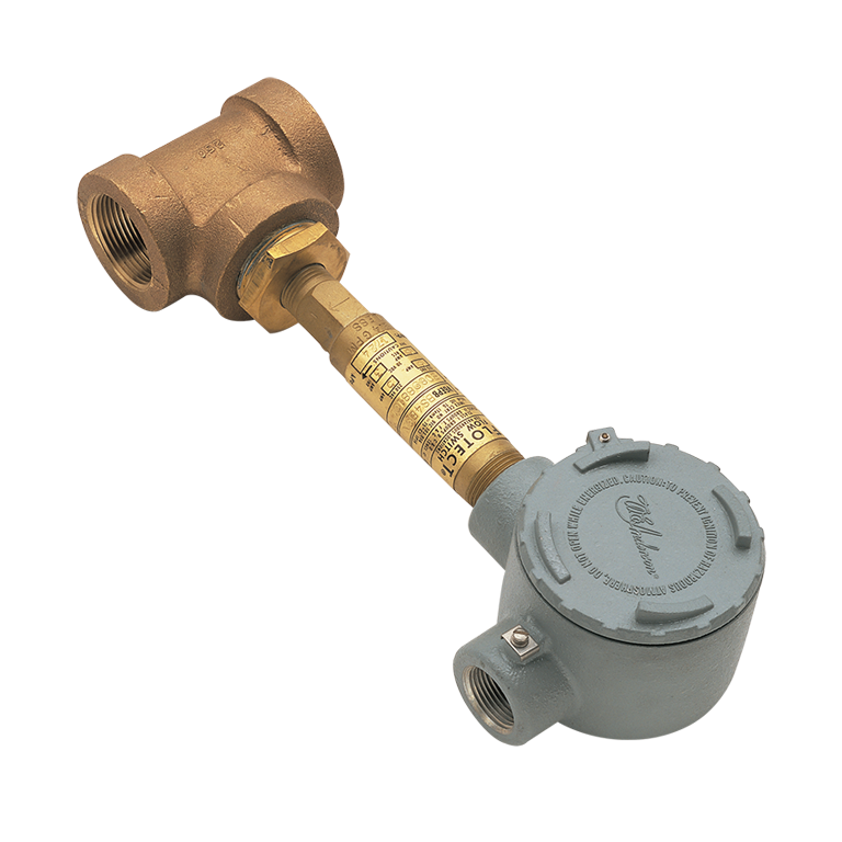 Model SP154DPDT is a flow switch for use with the 9001and 9001EXP alarms. Switch will activate at 2.4 gallons (9 L) per minute of flow. AC, 125/250 volts, 5 amps, double pole, double throw. 1-1/4" NPT inlet and outlet. Class 1, Division 1, Group B, C, D. UL Listed.