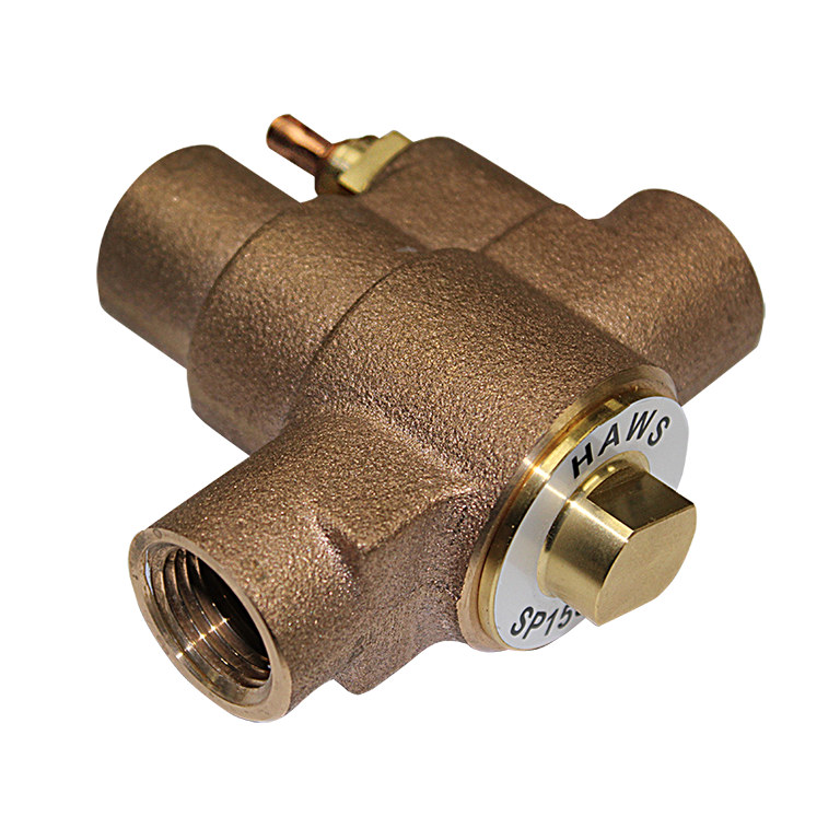 Model SP158B, fully engineered freeze protection valve is constructed of a one piece brass body and supplied with a removable cartridge for easy cleaning and maintenance. Automatic thermal actuator bleed valve opens when internal water temperature falls below 35 deg F (1.7 deg C) and closes completely when the water climbs back to 42 deg F (5.6 deg C) or above. 1/2 in NPTF inlet and outlet.