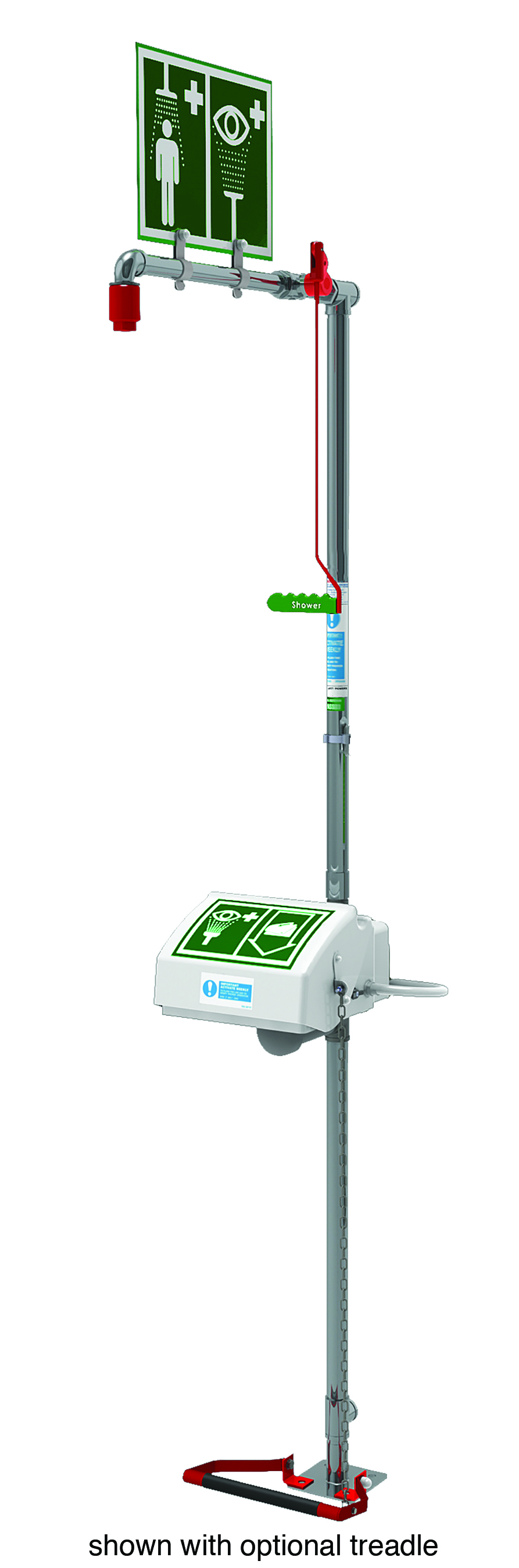Be prepared to respond to accidents with this all-in-one floor mounted combination safety shower with top water inlet that provides initial on-site treatment to eye/face or full body exposure to hazards. Suitable for use in applications that are not subject to the possibility of freezing or overheating. The system features a specially designed valve that includes an integral, heavy-duty stainless steel stop-plate to handle rough operation without failure. Durable, coated stainless steel pull handle with nylon valve connection is easy to grip and activate for immediate water drenching. Designed for high flow rates that meet or exceed ANSI standards, the nozzle offers optimal spray distribution for user protection. Unlike shower rose designs, this compact nozzle reduces the potential for insect nesting and eliminates high replacement costs associated with cracked or dented plastic spray heads. Made of durable, corrosion-resistant acrylic capped ABS, the eye/face wash with high, ANSI-compliant flow rate features an integral lid connected to the water valve for automatic operation - activate by simply pulling down the lid. Easy-to-reach flow regulator valve positioned on the side of the bowl adjusts to suit the severity of the accident. Solid construction using stainless steel pipework for added corrosion resistance. Includes an inspection record tag for recording service and test history. Add optional foot treadle for a secondary means of eye wash activation. Some assembly may be required.