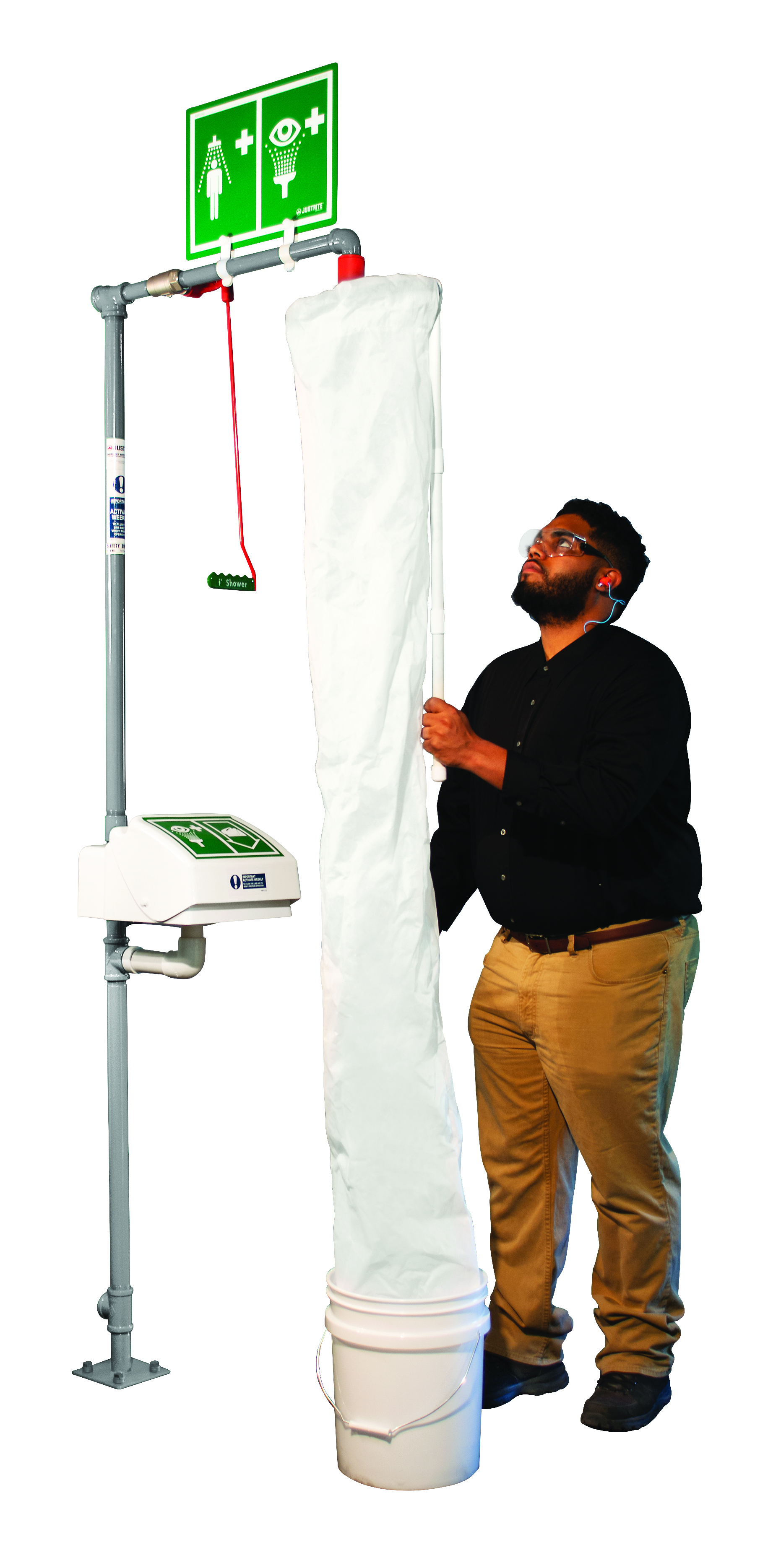 This shower test kit has everything needed to flow-test overhead emergency showers and ensure proper performance in the event of an accident.