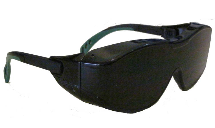 - One-piece polycarbonate lens fits over most prescription glasses