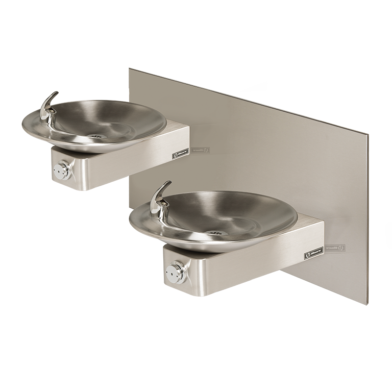 The Haws 1011 barrier-free Hi-Lo stainless-steel drinking fountain uses a patented stainless steel push-button valve assembly allowing for front access stream adjustment as well as cartridge and strainer access. This wall mounted swirl bowl designed fountain offers the 'only' all stainless-steel valve body that is machined out of solid bar stock, is fully serviceable through the front of the push-button assembly offering access to the water control cartridge and integral water supply strainer and has front access to the water stream height adjustment for easy maintenance without having to remove the valve.