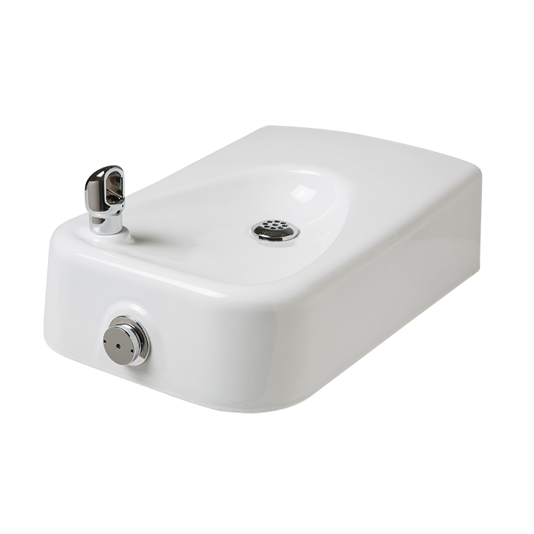 The Haws 1311 enameled iron, barrier-free drinking fountain uses a patented stainless steel, push-button activated, valve assembly allowing for front access stream adjustment as well as cartridge and strainer access. This wall mounted fountain offers the 'only' all stainless-steel valve body that is machined out of solid bar stock, is fully serviceable through the front of the push-button assembly offering access to the water control cartridge and integral water supply strainer and has front access to the water stream height adjustment for easy maintenance without having to remove the valve. Low profile wall mounted design accommodates adult or child ADA capabilities. Equipped with vandal resistant components, this fountain is not easily disrupted, quickly discouraging vandals.
