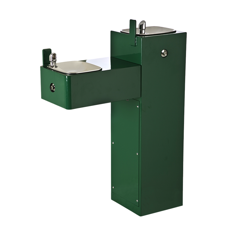 Haws heavy-duty pedestal drinking fountain 3300FR uses a freeze-resistant valve assembly to provide year round operation. Fully engineered pneumatic valve assembly is one of the best in freeze-resistant technologies. The "Hi-Lo" barrier free design of the 3300FR allows the square pedestal to be placed securely in multiple locations, all while providing for twice the users as regular drinking fountains. Equipped with vandal resistant components, this fountain is not easily disrupted, quickly discouraging the worst of vandals.