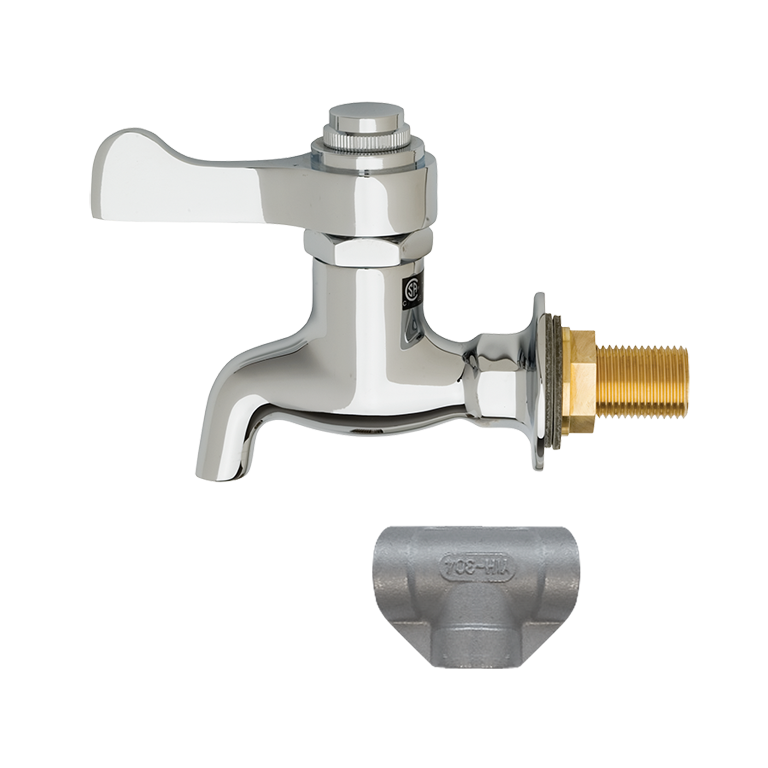 Model 6250LF bib faucet is for use on some Haws pedestal fountains shall include a polished chrome-plated brass lever handle valve with integral mounting flange, mounting hardware and fittings and 3/8 in NPT inlet.