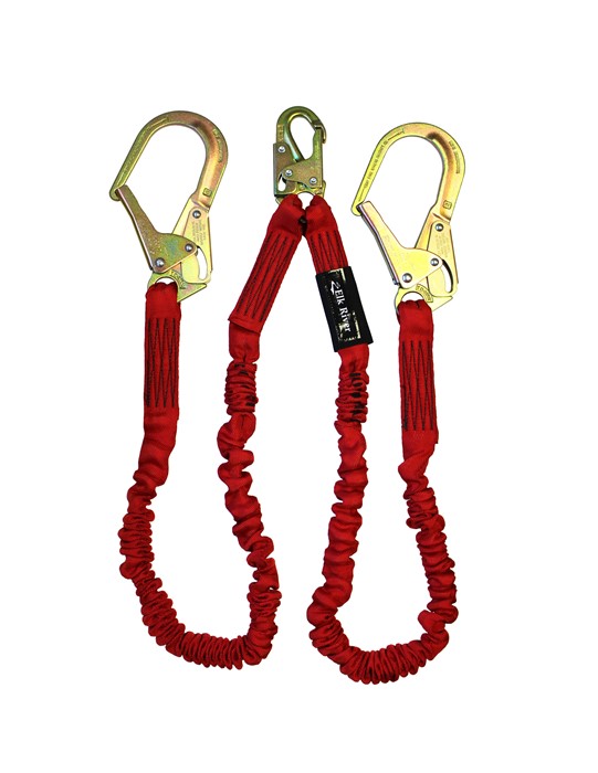 The Elk River Flex-NoPac twin leg lanyard with steel rebar hooks is one of the most popular shock absorbing lanyards. This twin leg lanyard features 6 ft legs with a 2-1/4 in double-locking rebar hook at each end and a 3/4 in centurion auto-lock snaphook in the middle.