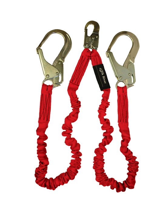 The Elk River 35487 Flex-NoPac lanyard is a 1-1/2 in x 6 ft twin leg lanyard made from polyester and nylon webbing. Aluminum rebar hooks are featured on each leg end and an aluminum snaphook connector is at the center. All hooks have a 3.6M gate strength.