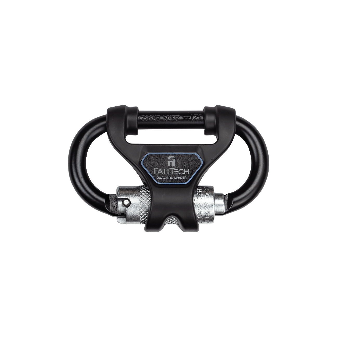 5071 Triple-lock carabiner with alignment clip housing swivel eye connector for easy installation 5000 lbs electro plated alloy steel carabiner with 3600 lbs. triple action gate molded plastic alignment clip for secure placement and positioning of the assembly on the harness to prevent SRD's from tangling Carabiner with alignment clip can be used to pair single leg SRDs into twin-legs complies with the following ANSI requirements ANSI Z359.12.