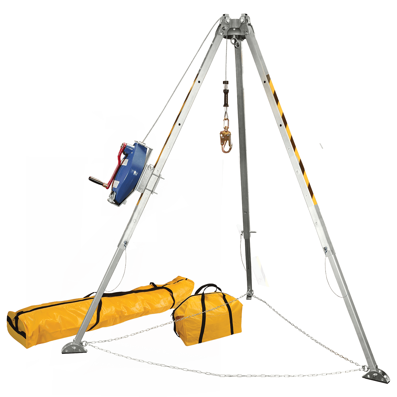 - System kit includes tripod, 60 ft galvanized steel cable SRL-R, leg bracket and leg safety chain