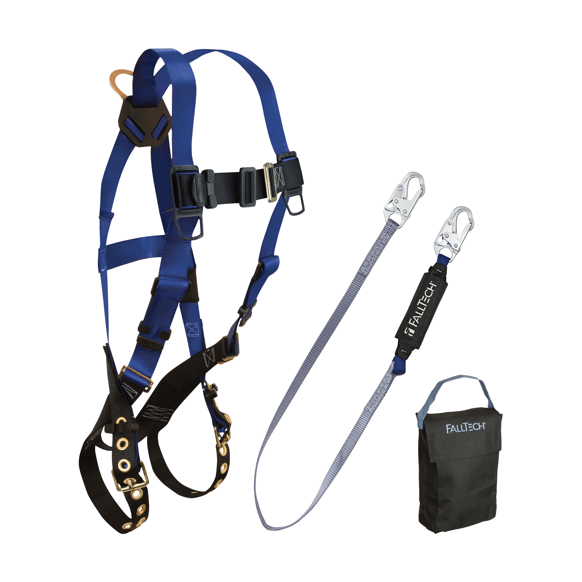 Falltech User kits provide you with user-based solutions by prepacking our most accepted harnesses and lanyards in convenient pairings to address the most common fall arrest needs. Kits include contractor and FT Basic harness options with single-leg internal-series lanyards combined in a mini storage bucket or with a gear storage bag.