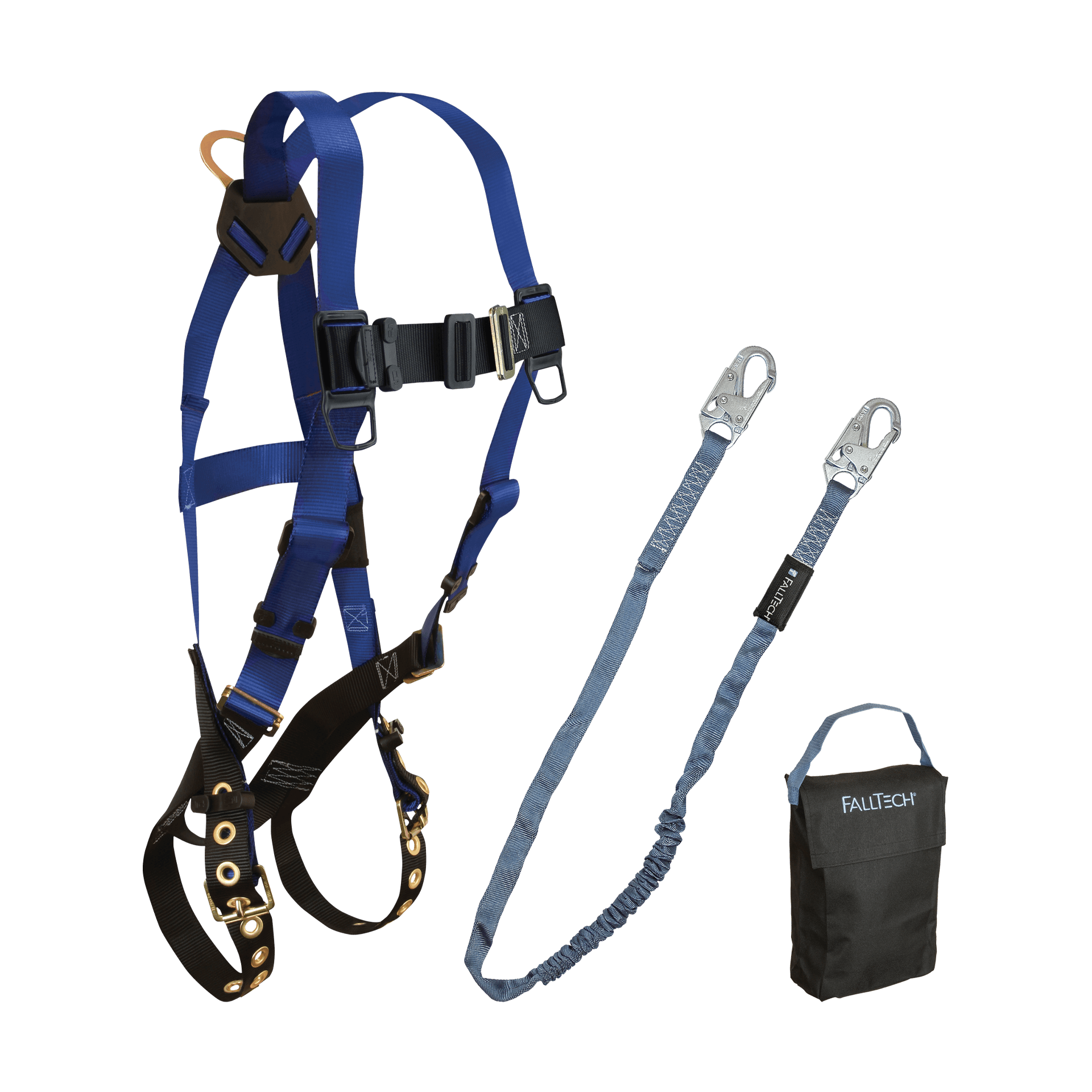 Falltech User kits provide you with user-based solutions by prepacking our most accepted harnesses and lanyards in convenient pairings to address the most common fall arrest needs. Kits include contractor and FT Basic harness options with single-leg internal-series lanyards combined in a mini storage bucket or with a gear storage bag.