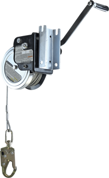 Single user mechanical winch for entering and exiting confined spaces features an internal braking system including a secondary brake for redundancy. Includes integral mounting bracket for Davit and Tripod installation.