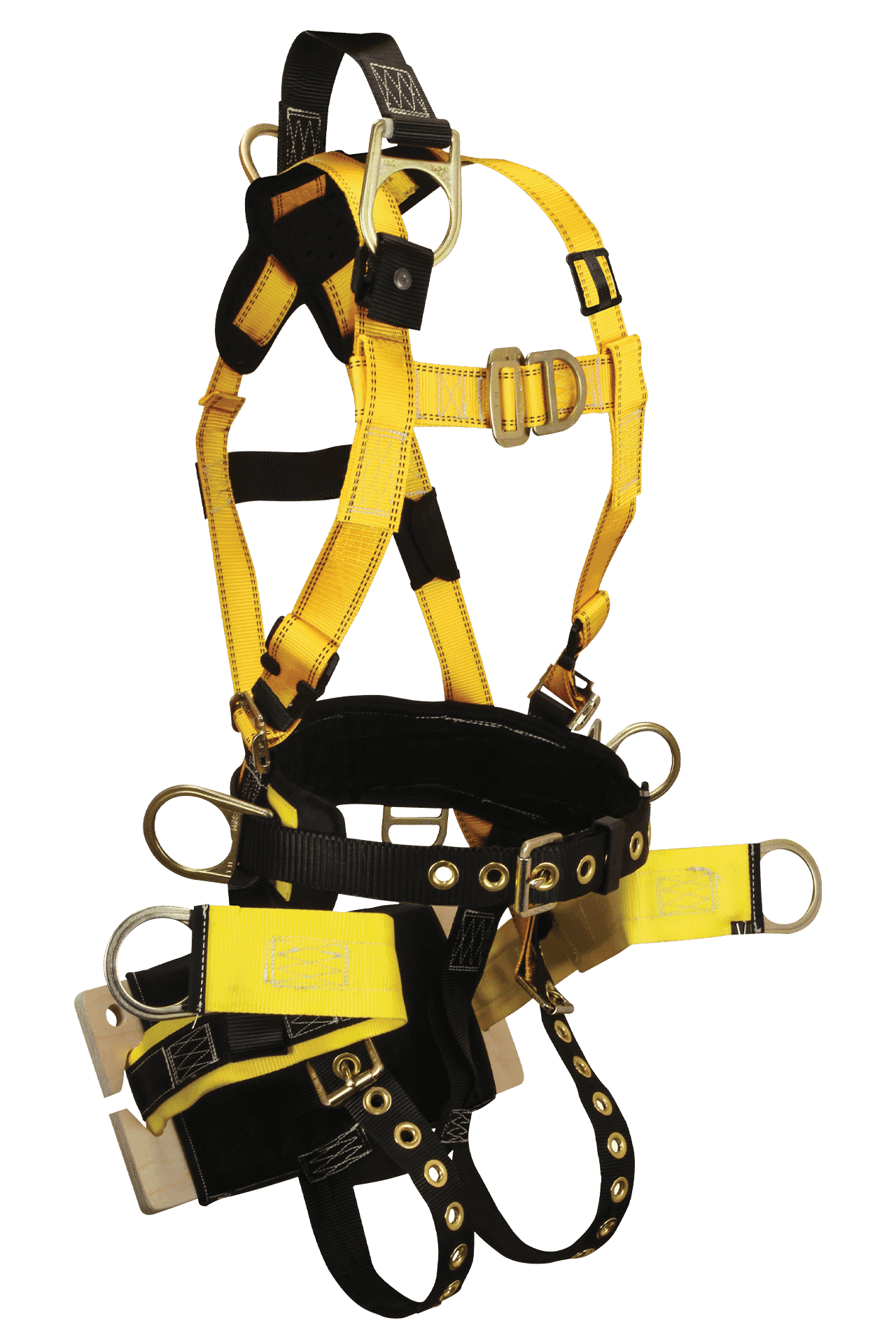 - Distinctively designed with seven D-rings to address multiple user applications involved with derrick work including climbing and suspension