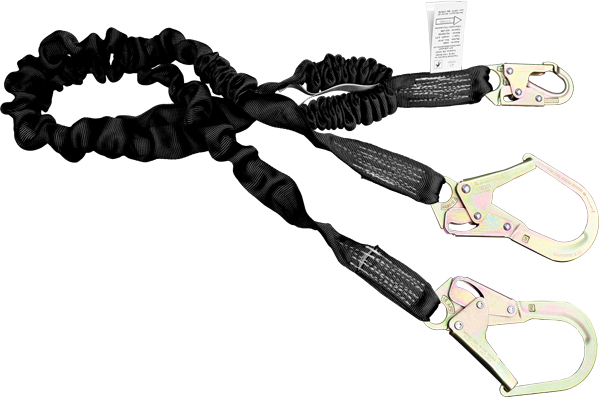 This dual-leg tubular-elastic web lanyard with internal shock absorbing core limits fall arrest forces to 900 lb. When tested to OSHA and ANSI standards.