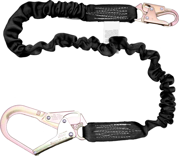 This tubular-elastic web lanyard with internal shock absorbing core limits fall arrest forces to 900 lb. When tested to OSHA and ANSI standards.