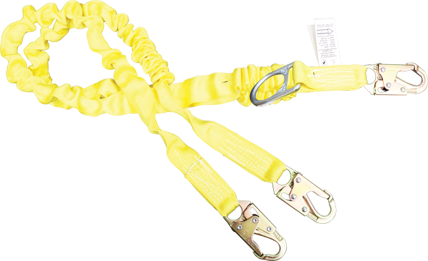 This dual-leg tubular-elastic web lanyard with internal shock absorbing core limits fall arrest forces to 900 lb. When tested to OSHA and ANSI standards.