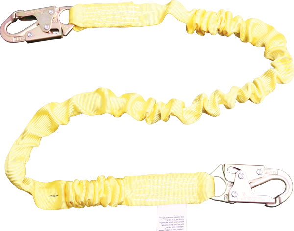 This tubular-elastic web lanyard with internal shock absorbing core limits fall arrest forces to 900 lb. When tested to OSHA and ANSI standards.