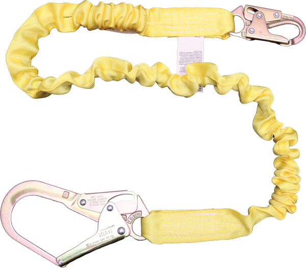 This tubular-elastic web lanyard with internal shock absorbing core limits fall arrest forces to 900 lb. When tested to OSHA and ANSI standards.