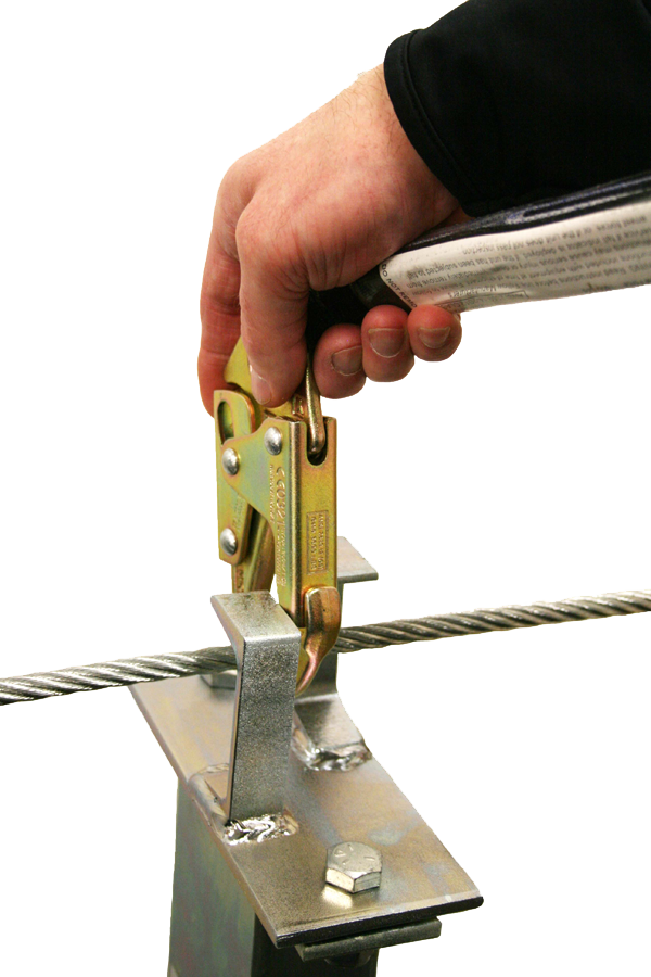 Allows continuous tie-off and mobility between spans