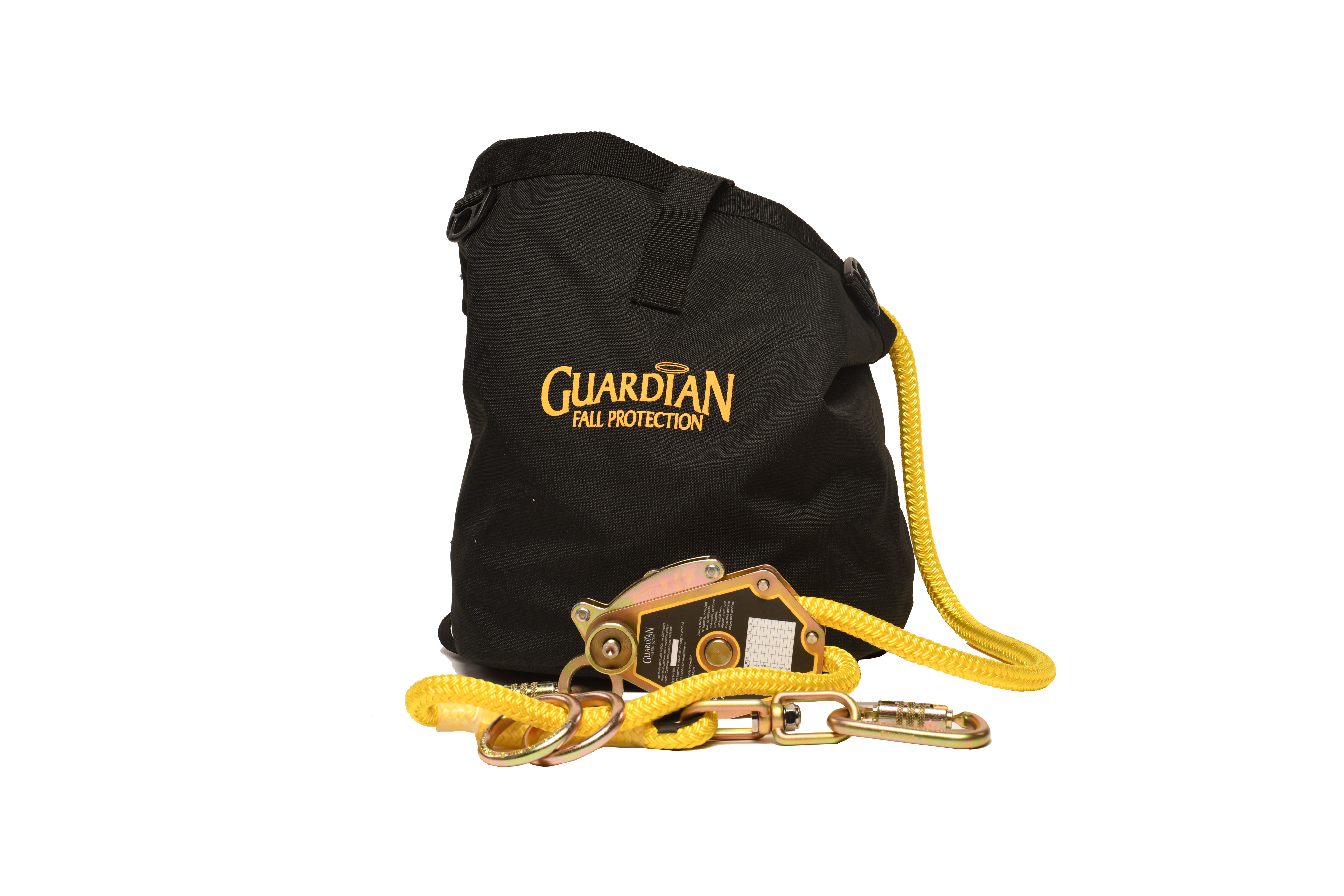 Guardian's HTL-30/60/100 lightweight rope horizontal lifeline solutions excel in applications when you need a quick setup and tear down with a minimal of fuss. HTL-Series HLLs feature a built-in tensioner for easy one-person installation and error-free sag adjustment - just attach the double-locking carabiners to compatible anchorage connectors, turn the tensioner until it slips, connect your lanyard and get to work. Guardian HTL horizontal lifelines accommodate up to two workers in Fall Arrest or Fall Restraint, and are available in 30, 60, or 100 ft lengths. HTLs come fully assembled and ready to use with tensioner, 2 O-Rings, 2 Cross Arm anchor straps and a durable nylon carry/storage bag